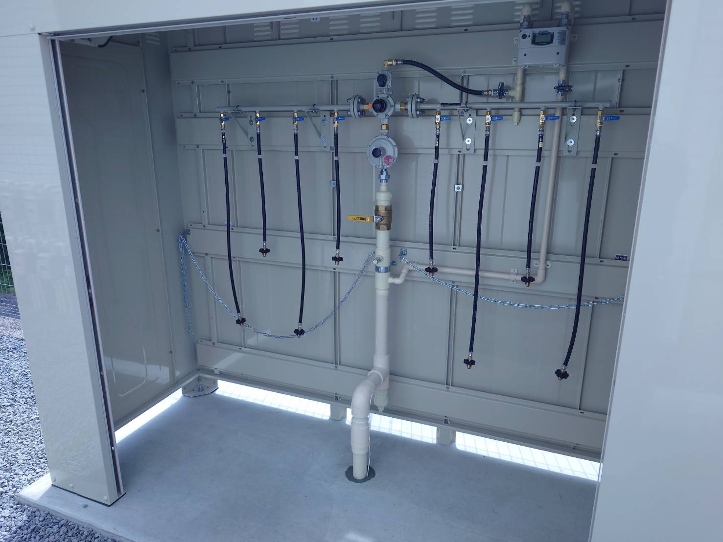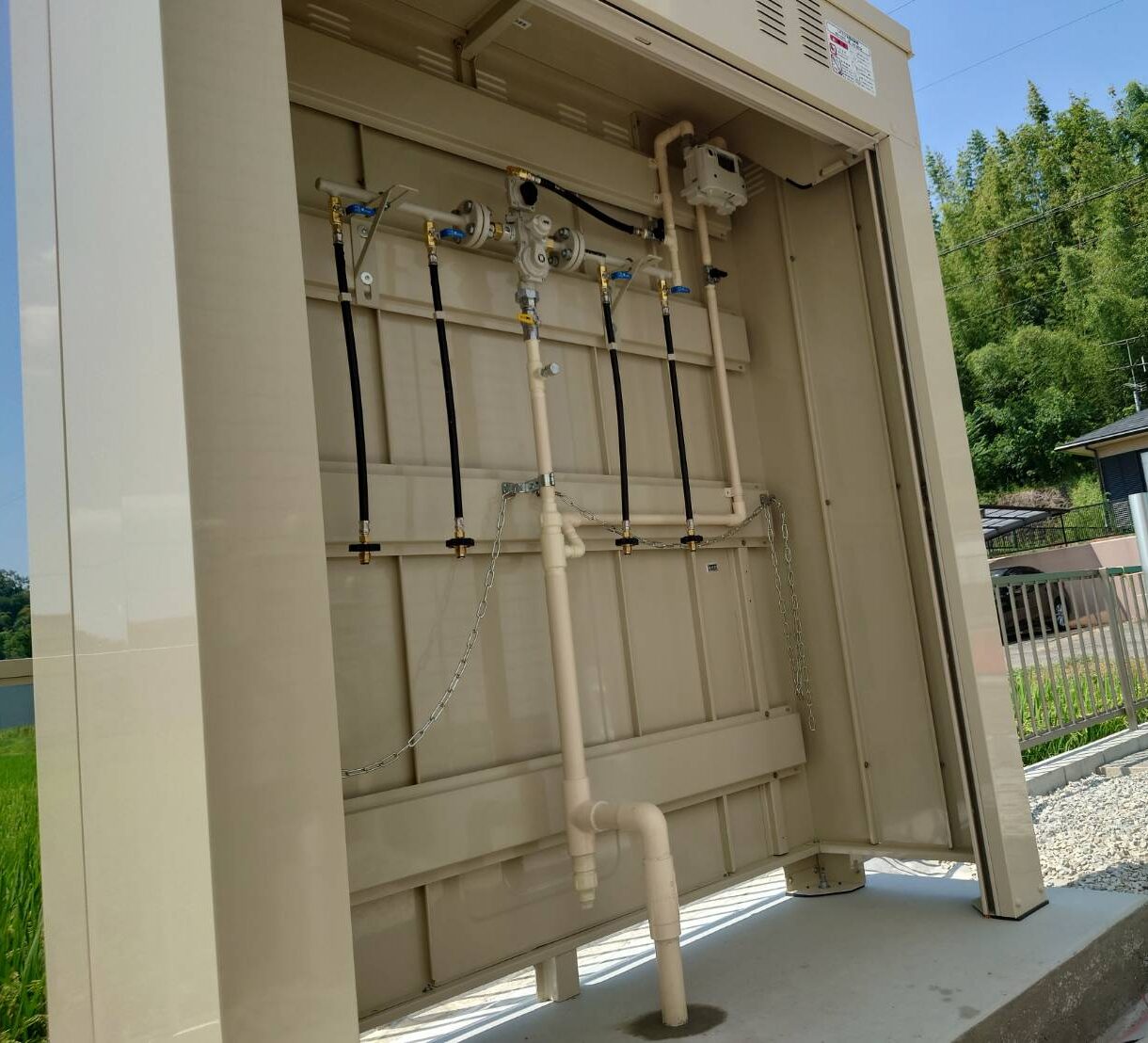 三重県桑名市 新築集合住宅 ボンベ庫取付工事