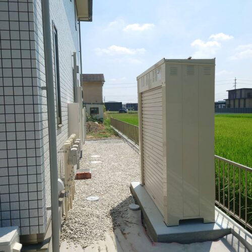 岐阜県羽島市 ハウスメーカー新築アパート ボンベ庫取付工事①